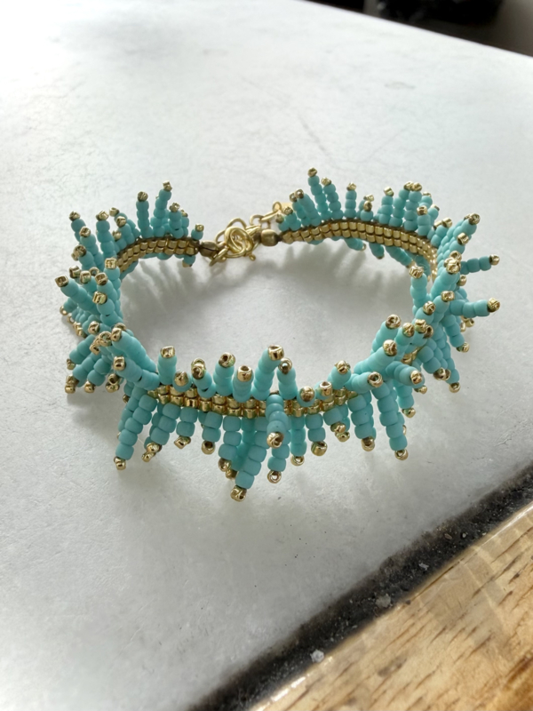 Erg leuk te combineren met andere gouden of turquoise sieraden uit de collectie.