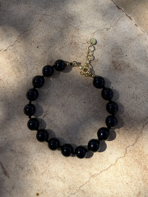 Deze armband met zwarte glaskralen is dé match voor iedere outfit die wat slice kan gebruiken.