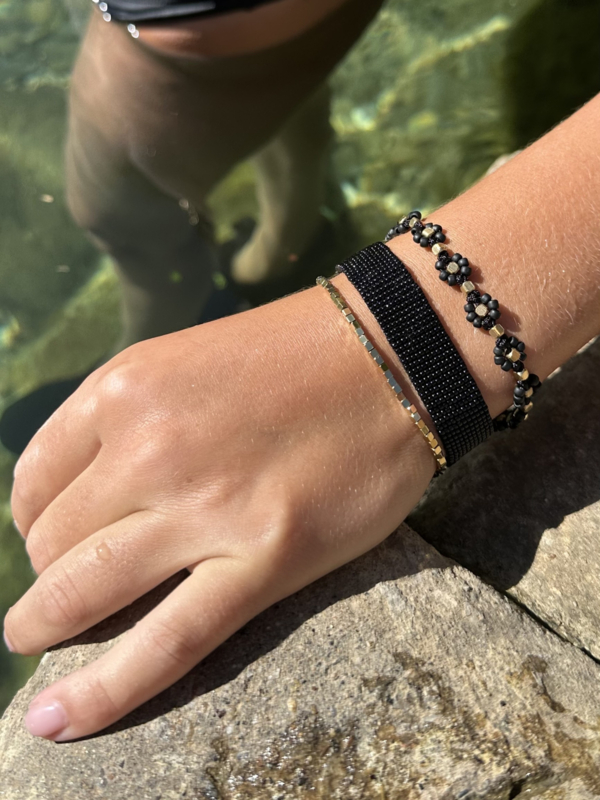 Dankzij de verstelbare schuifknoop past deze armband comfortabel om elke pols.